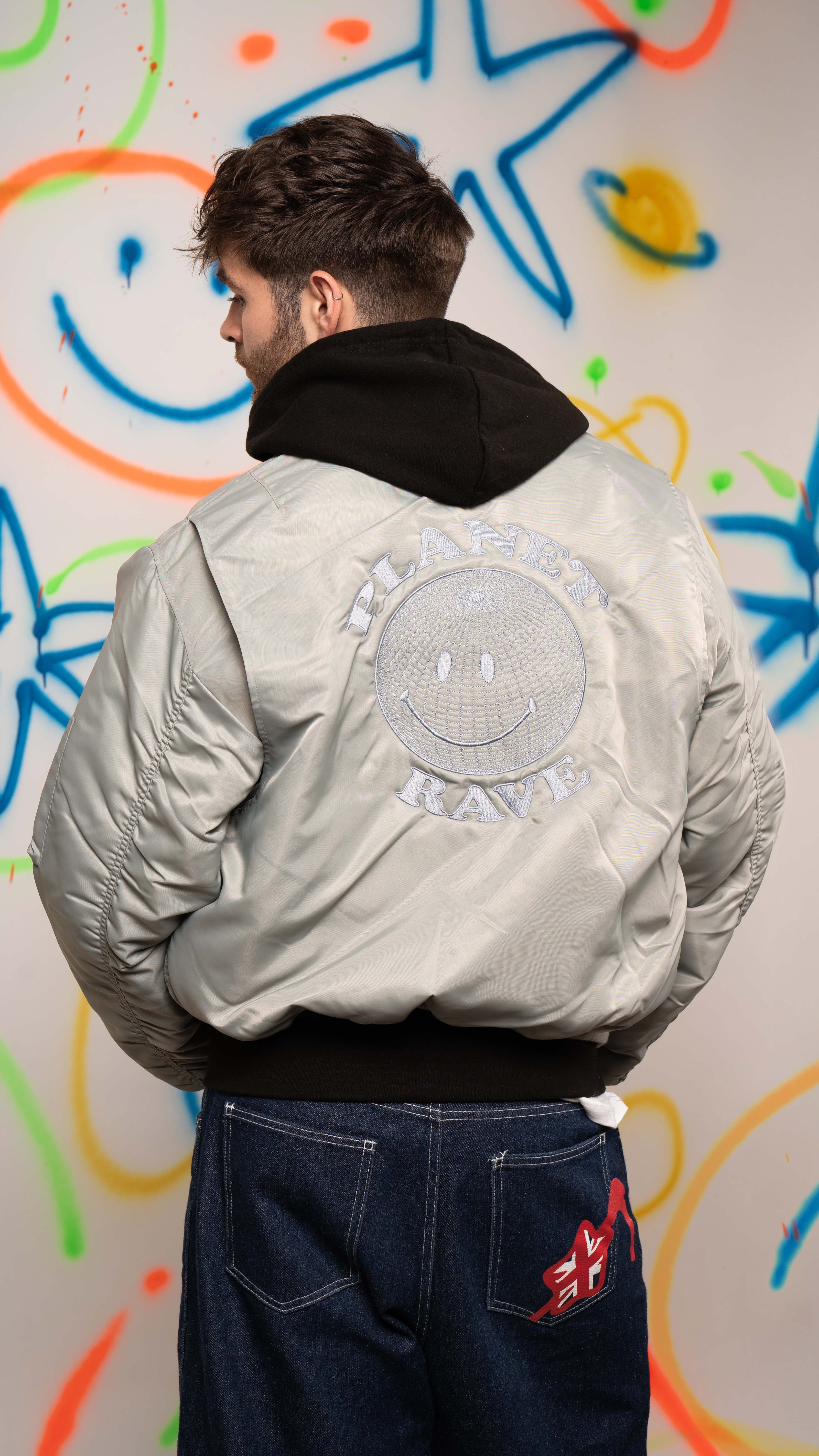 Embroidered Planet Rave MA-2 Bomber Jacket Silver